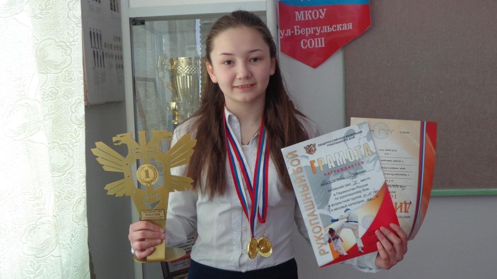Рузанна Бахрачёва заняла 1 место в своей весовой категории, став Чемпионом России. Рузанне 15 лет, 5 из которых она занимается рукопашным боем в Доме детского творчества. Рузанна является талантливой и разносторонней личностью, увлекается пением и танцами.